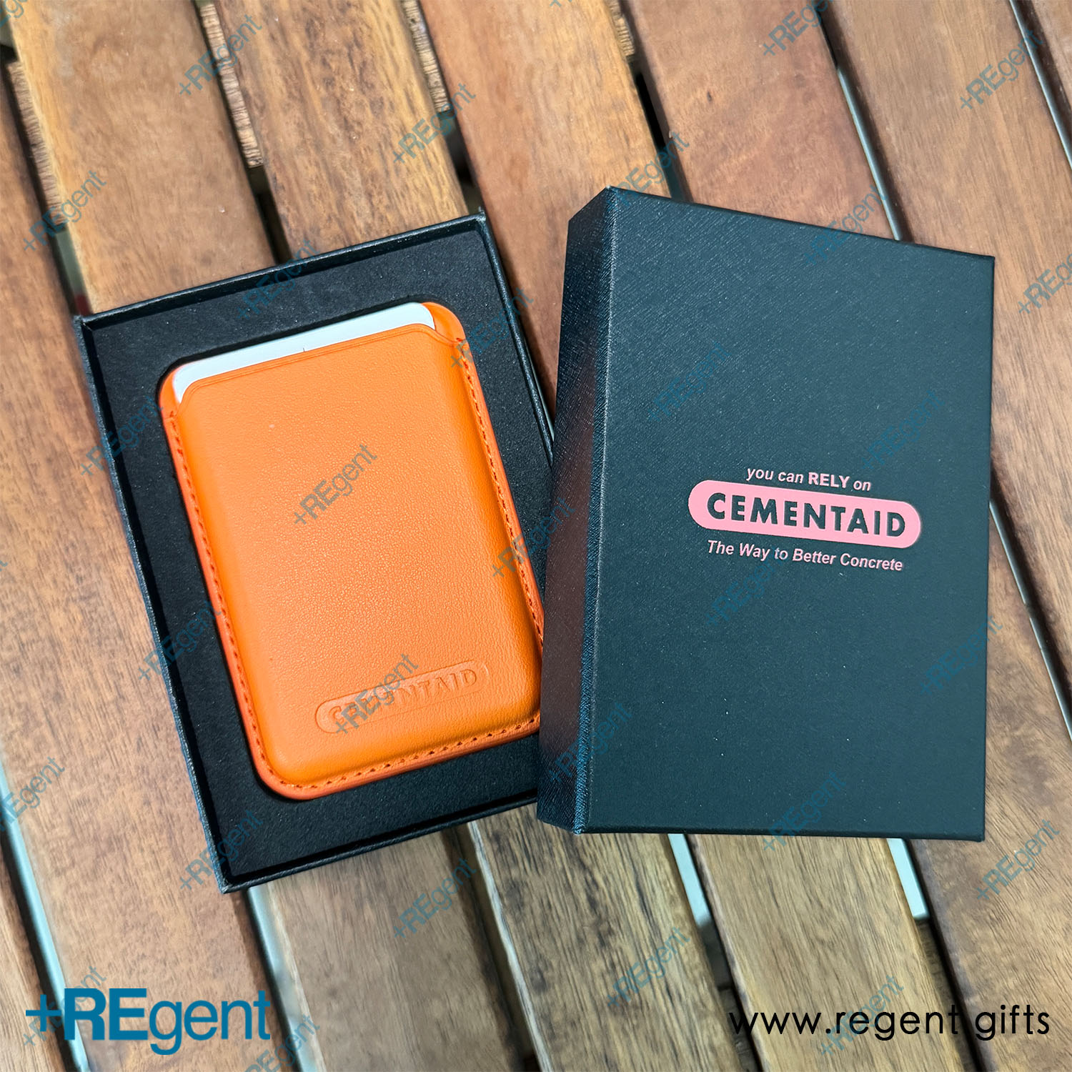 In today's world, where smartphones have become central to daily life, phone accessories have emerged as a powerful platform for brand promotion. This MagSafe magnetic phone wallet made from PU leather, crafted by Regent Gifts for the international construction chemical brand Cementaid, not only addresses the "card storage" challenge in the digital payment era but also integrates brand sophistication into every user interaction through exquisite embossing craftsmanship.