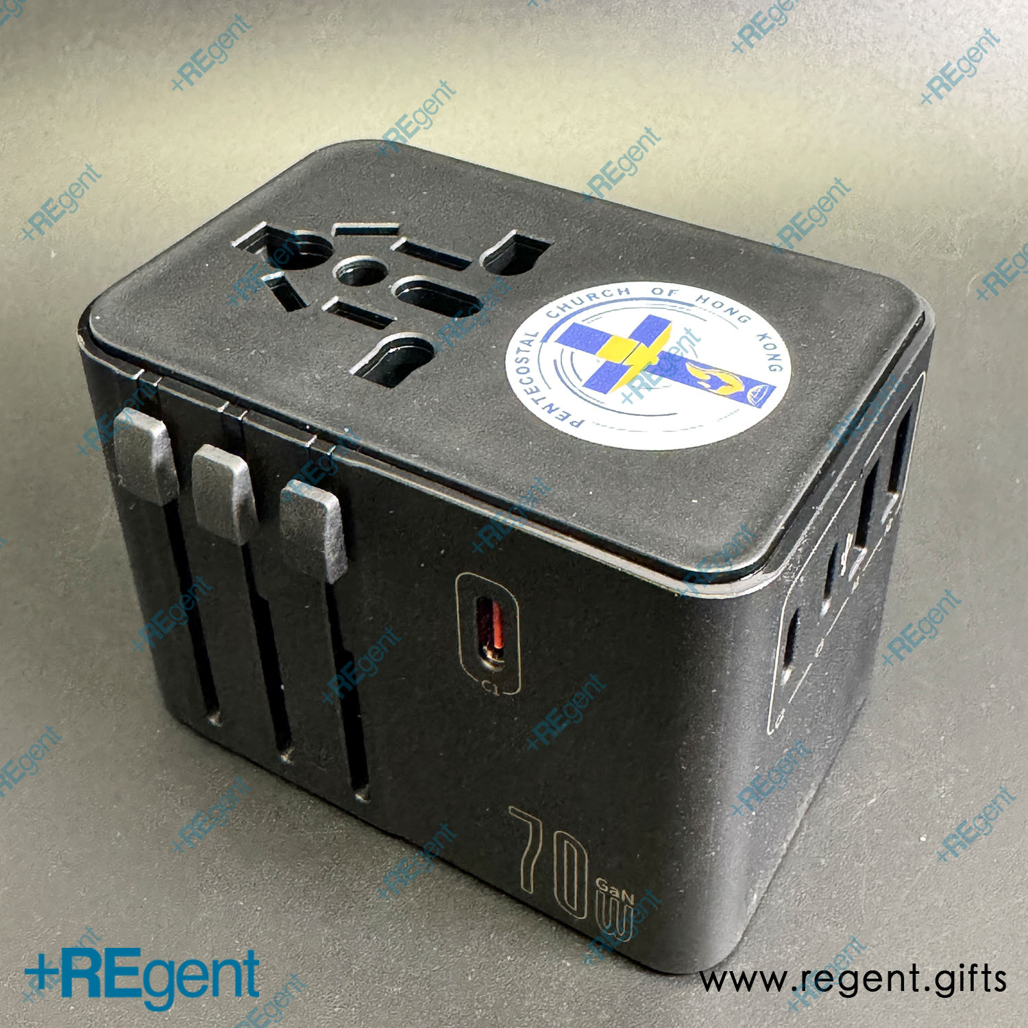With the resurgence of global exchanges and missionary travel, an efficient and safe travel adapter has become an essential tool for international trips. Regent Gifts specially customized this 70W GaN (Gallium Nitride) universal travel plug for the Pentecostal Church of Hong Kong. Not only is it compact in size, but it also boasts powerful power output capabilities, making it an excellent medium for various organizations to showcase their international vision and practical care.